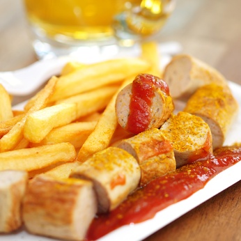 Da sitzt Du nun bei Pommes Currywurst (sehr lecker im Übrigen) und hast den ganzen Tag über mal schick vergessen zu essen und zu trinken.